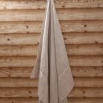 Linen towel 80×150 cm with a 1.5 cm wide light grey-white traditional woven ribbon on both ends. This linen towel absorbs moisture very well. It can be used daily as a towel after a bath/shower, or in the sauna as a towel to wrap around the body.